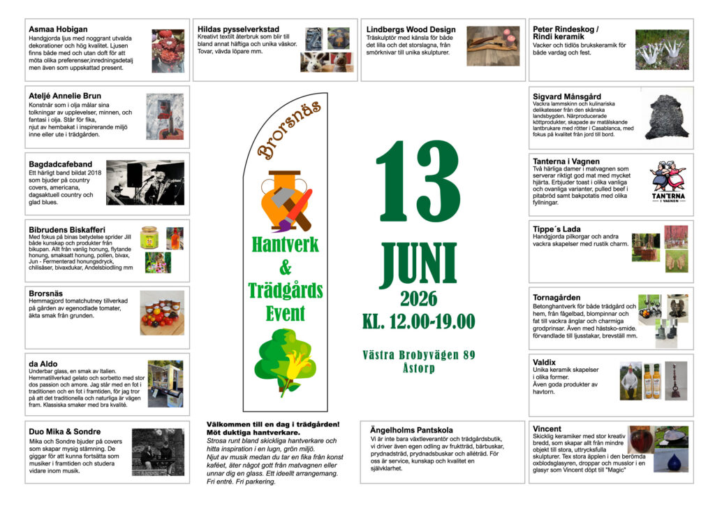 Den 13 juni kl. 12.00–19.00 bjuder vi in till ett ideellt hantverks- och trädgårdsevent i vår trädgård.