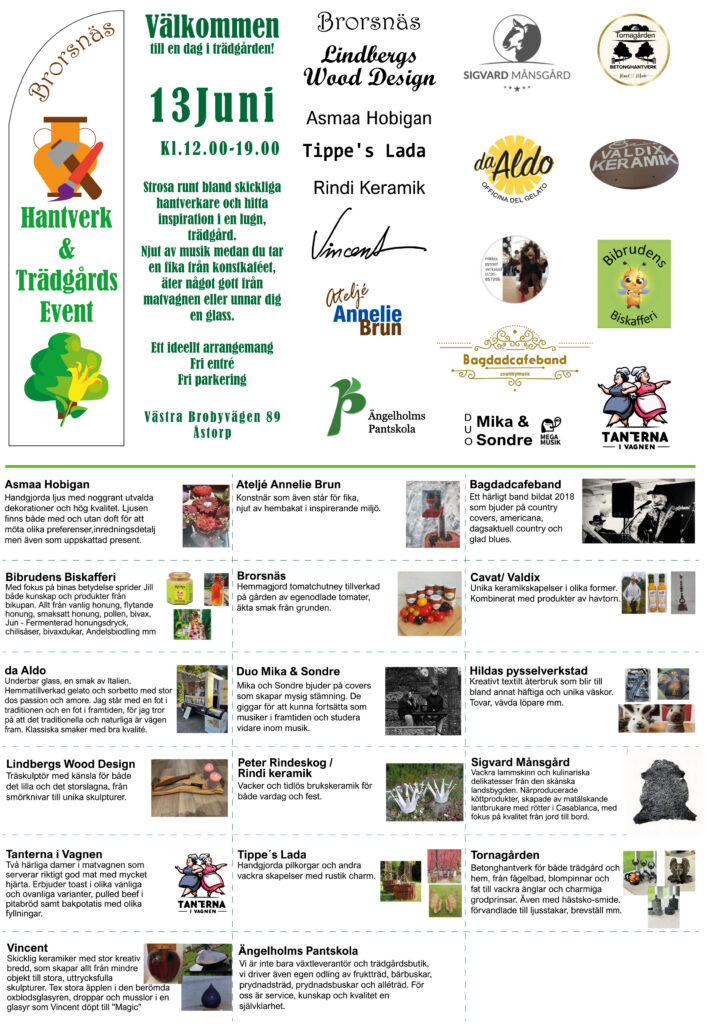 Den 13 juni kl. 12.00–19.00 bjuder vi in till ett ideellt hantverks- och trädgårdsevent i vår trädgård.